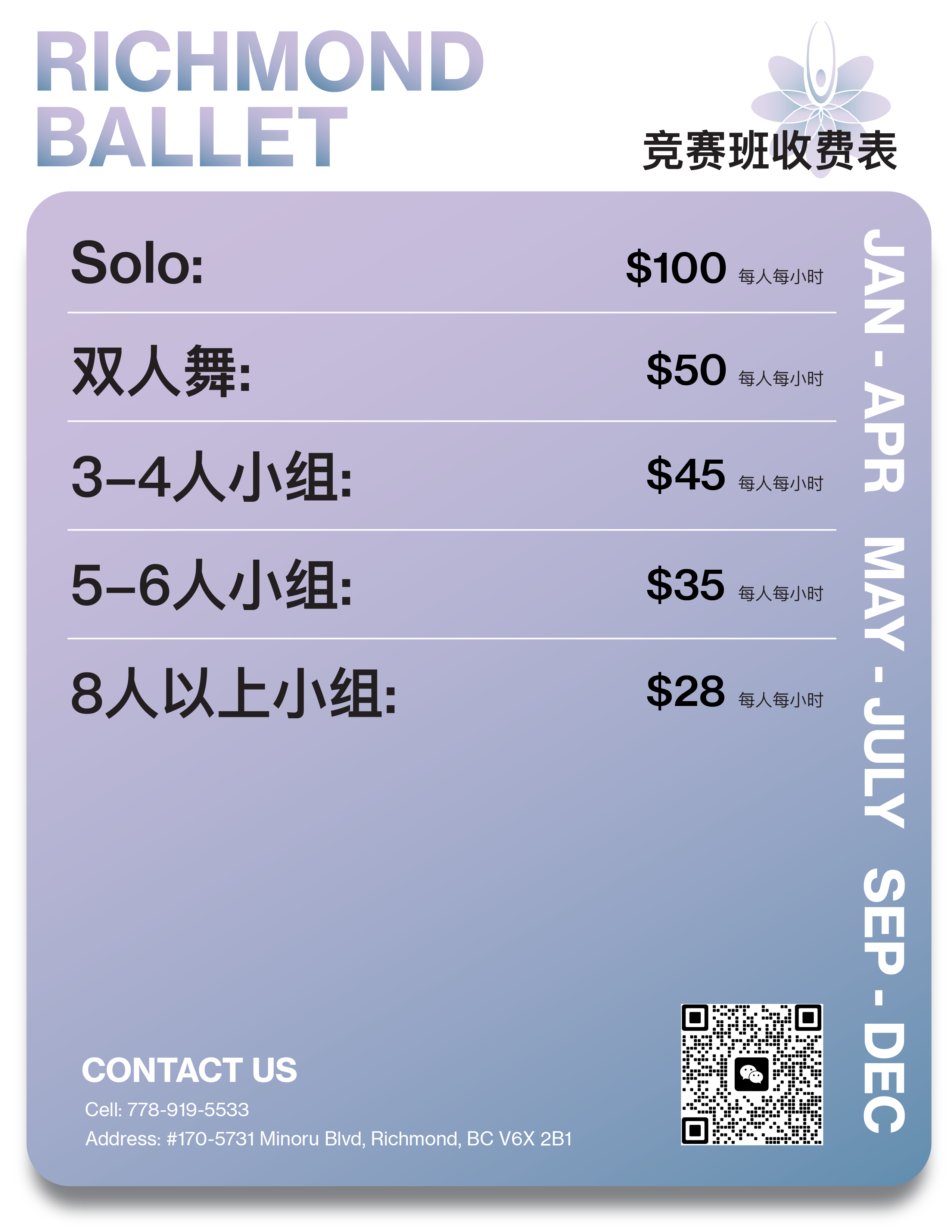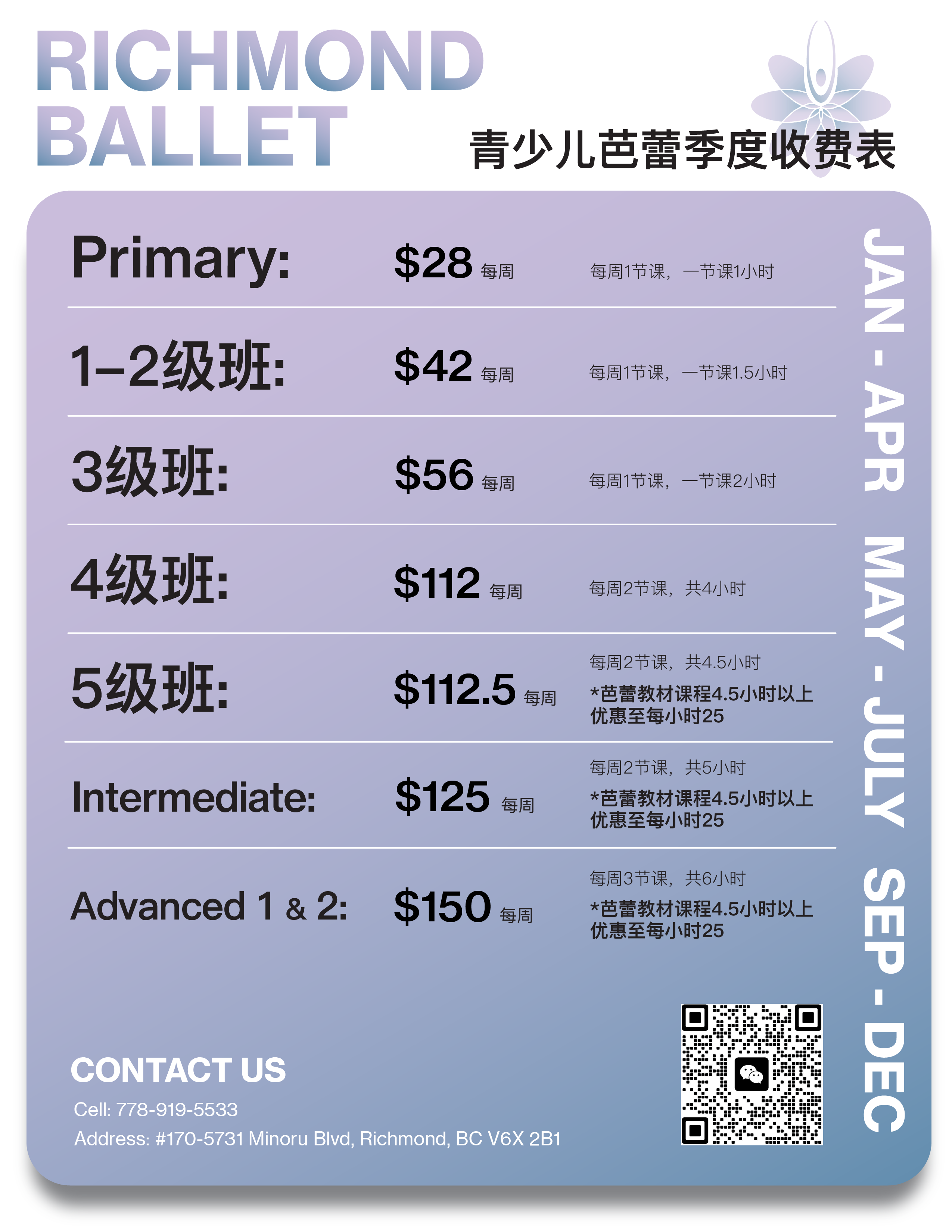 Richmond Ballet Studio is dedicated to offering top-quality ballet education led by Chief Instructor Lilian, with a team of passionate and highly qualified instructors who help aspiring dancers achieve their goals.