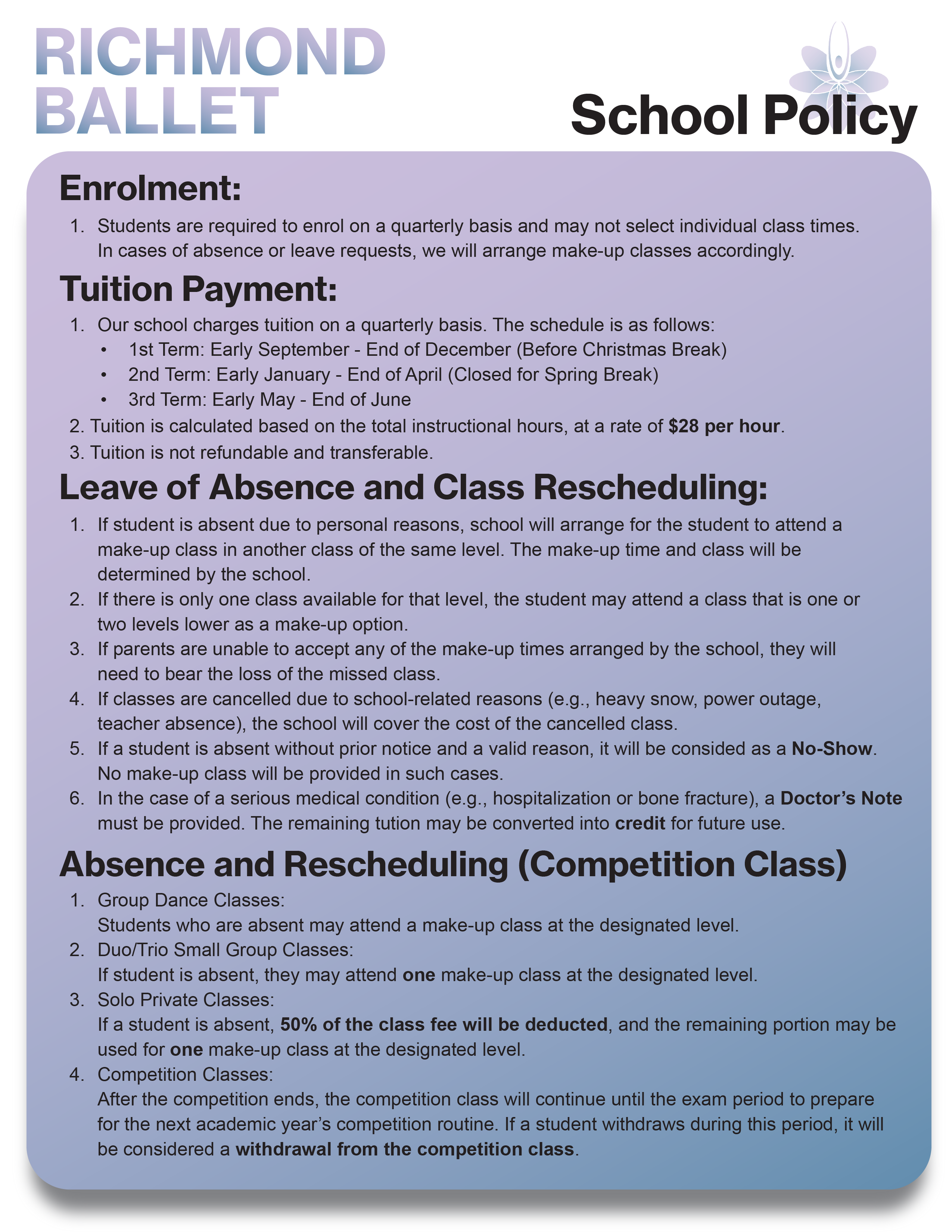 Calendar / Policy / Tuition